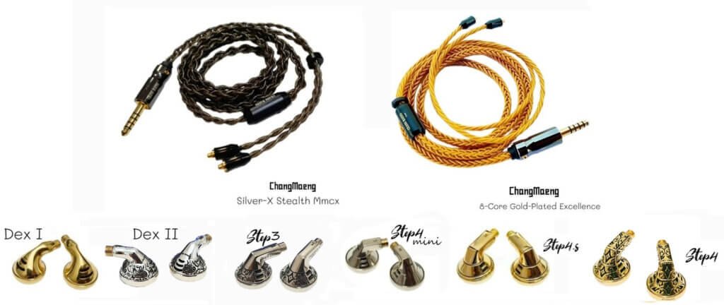 Chang Maeng currently offers two core models — DEX and STEP — with a wide range of custom options: metal choice (nickel silver, brass, copper, sterling silver, and even gold), either a clean or Thai-patterned design, and finishes ranging from matte to mirror polish. Buyers can also pick between shorter and longer stem versions, as well as a much cheaper plastic faceplate or a handmade metal one. All models utilize 15.5mm dynamic drivers and come with MMCX connectors. While browsing Chang Maeng’s Facebook photo albums, you might spot some older discontinued models — these may still be available upon request. Handbraided cables come as an option too.