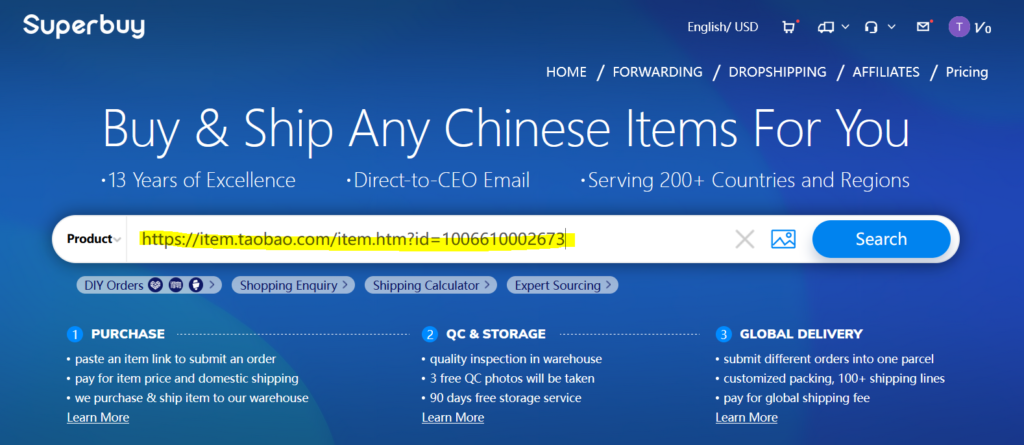 So the best way would be having the direct link to the item you want on Taobao (or other supported marketplace) and pasting it into Superbuy’s search bar: