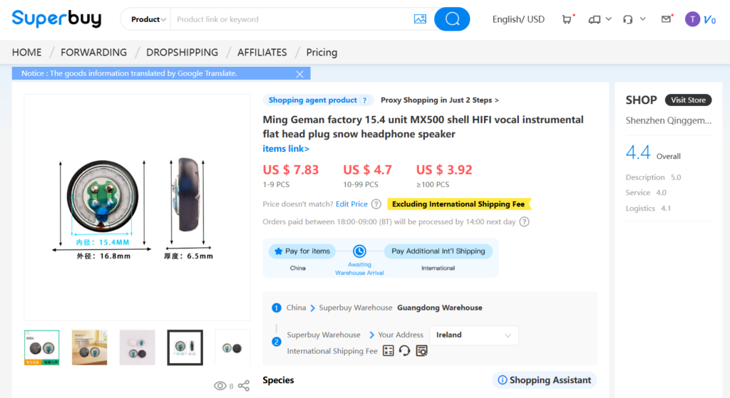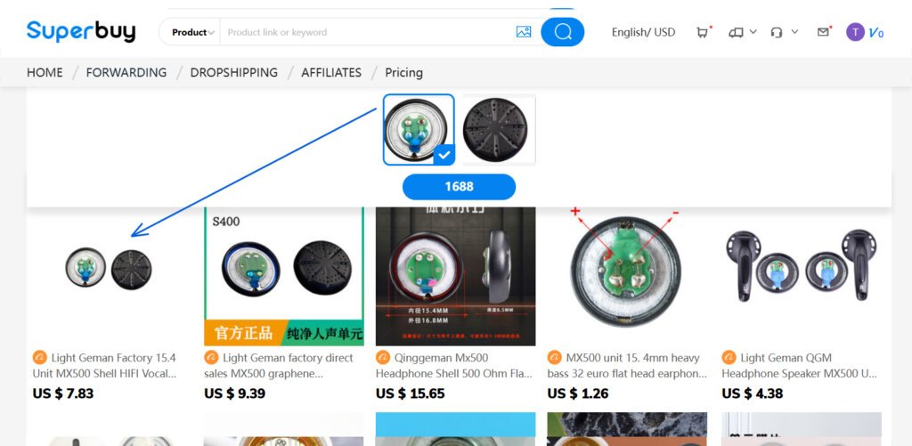 Let’s try and see how it goes with the actual product – the QIGOM S68A 15.4mm 68Ohm dynamic speaker driver with graphene membrane. A pair costs around USD20 on AliExpress. I used the same photo of the driver on SuperBuy’s search and it worked very well this time: