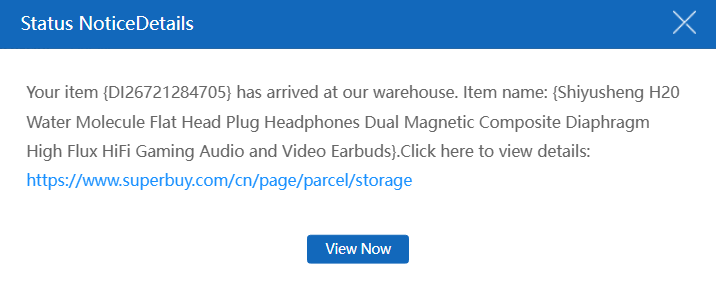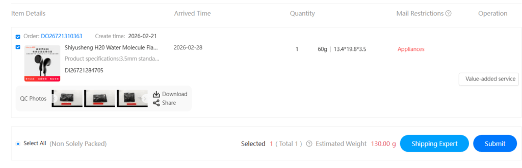The message contains the link to your storage, where you can see all the items which are ready to be shipped to you. In this particular case, I only had one order delivered to SuperBuy’s warehouse: