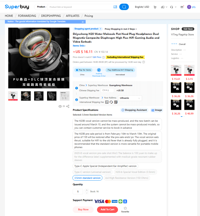 Unluckily, the image search does not work perfectly all the time – for example, earbuds get recognised as shower heads….. So what I do then is I search for Taobao items on Google (usually by image search) and then just copy&paste the link to the SuperBuy: